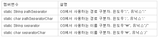 경로와 관련하여 편의를 위해 File 클래스가 제공하는 멤버 변수이다.
