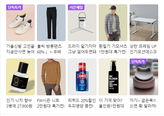 위의 사진도 네이버 홈페이지의 쇼핑란에 상품을 나열해 놓은 것으로 목록 태그를 이용하여 구현해 놓았다.