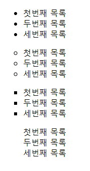 | none | list style 을 표시하지 않음 |
