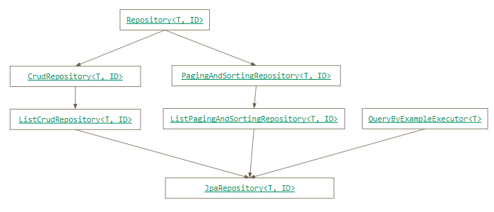 public interface JpaRepository<T, ID> extends ListCrudRepository<T, ID>, ListPagingAndSortingRepository<T, ID>, QueryByExampleExecutor<T> {