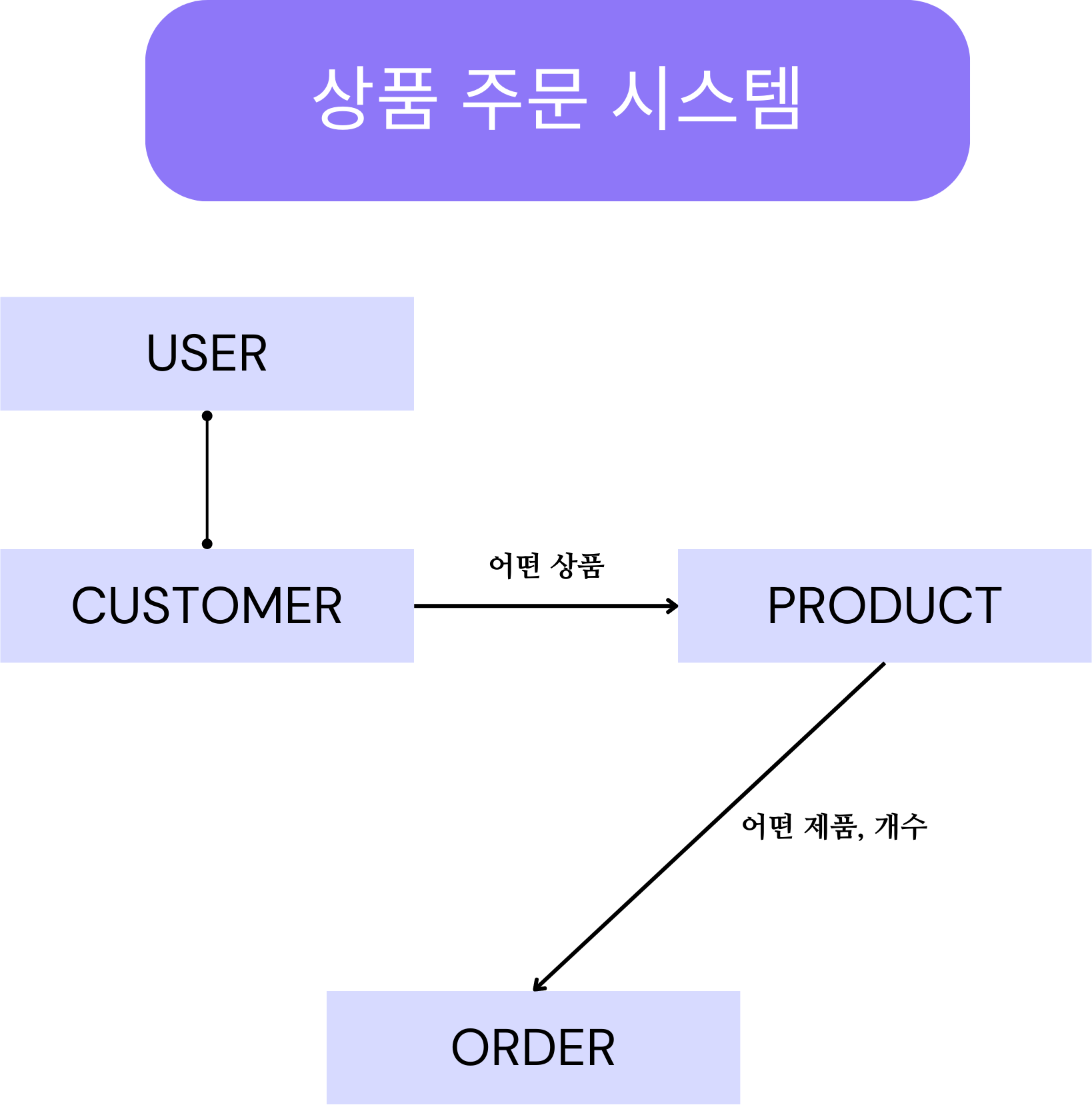 상품 주문 시스템에 필요한 데이터로는 구매자(Customer), 상품(Product), 결제(Pay) 정보가 있다. 이러한 정보를 토대로 데이터 모델이 데이터를 저장하고 조회 등을 효율화 하여 요구 조건 등을 충족할 수 있도록 설계되어야 한다.