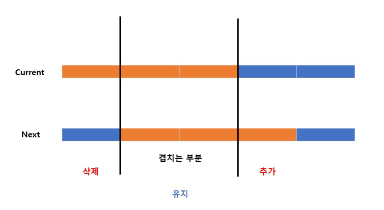 - 슬라이드 되었으므로 부분배열의 첫부분은 삭제, 추가된 부분의 값 추가