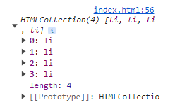 html에 목록을 생성시키고 script를 통해 목록의 아이템에 getElementsByTagName을 통해 다 불러온다면, 어떠한 형태로 list에 저장되었는지 알아보기 위해 콘솔 창에 출력 시켜 보았다.